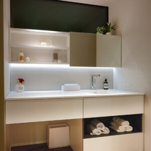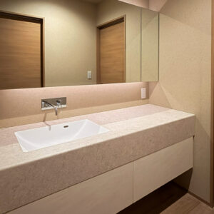 抜け感と機能美の調和。無駄を削ぎ落とした上質なパウダールーム -